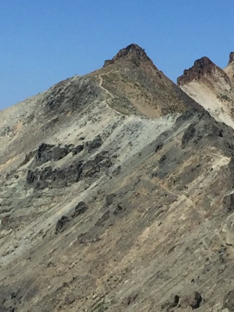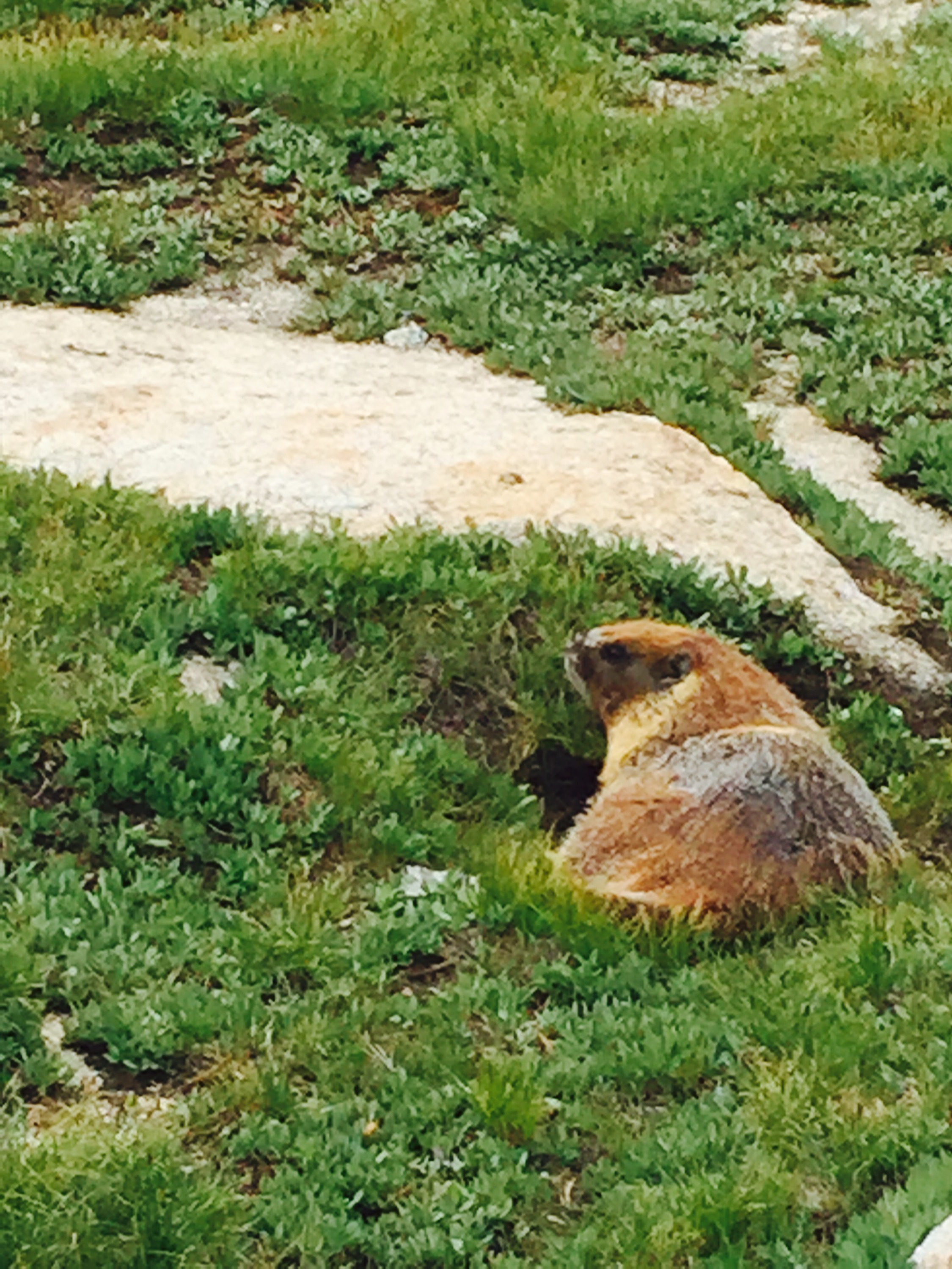 We waited for rain to pass, but it was only sprinkles, so we wasted more time crammed in our stinky, tiny tent. We’re tired of everything being wet. A cute pica skittered up hoping to gnaw more holes in Joaquin’s backpack cover, a black garbage bag.