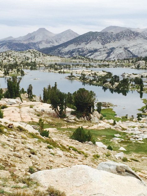 The three of us headed up Selden Pass a series of switchbacks. It was a short steep climb. Joaquin felt strong which she attributed to sleeping at 10,000 feet. We were passed by a man in his early thirties carrying an American flag. We all converged at the top to take picture and wish each other a happy fourth.